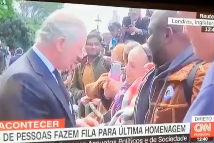 La imagen muestra cómo el rey Carlos III pasea por la valla saludando a aquellos que esperaban en las calles de Londres para entrar en el palacio de Westminster. En un momento dado, aparece en escena un ciudadano negro, Carlos III se gira unos segundos y a la que vuelve hacia la fila no le estrecha la mano al hombre, a pesar de la insistencia de este.