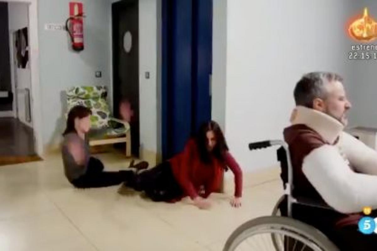 La cuenta oficial de Mediaset en Twitter ha compartido una escena en la que aparecen Miren Ibarguren y Loles León cayendo al suelo y hay un llamativo detalle: se nota a la legua que la que cae no es Loles León, es una doble.