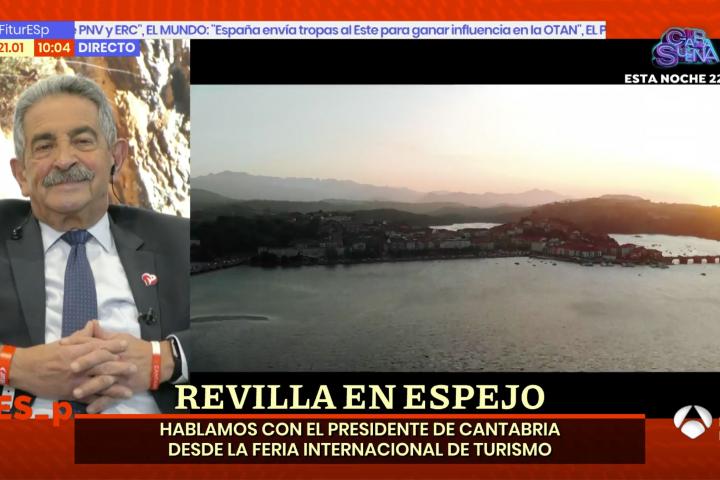 Miguel Ángel Revilla ha entrado este viernes en directo en Espejo Público desde Fitur donde, como otros presidente autonómicos, ha acudido a publicitar su región.
