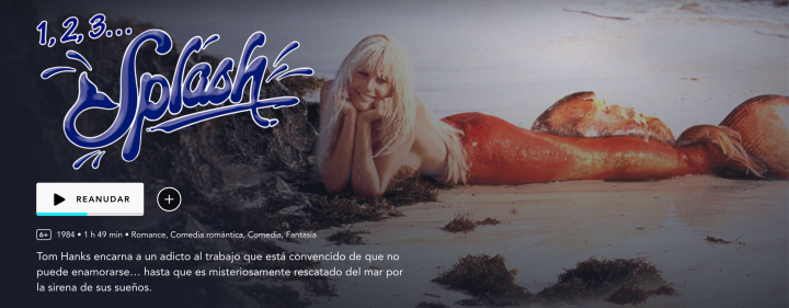 Hay un asunto más. Un, dos, tres... Splash era hasta ahora una película para todos los públicos. Sin embargo, con la llegada de esta plataforma orientada principalmente a los niños ha adquirido otro clasificación: para mayores de 6 años.