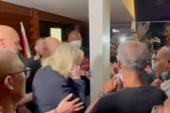 Los escoltas de Le Pen arroparon a la candidata y la evacuaron hasta su habitación mientras continuaban los silbidos y los insultos en criollo.