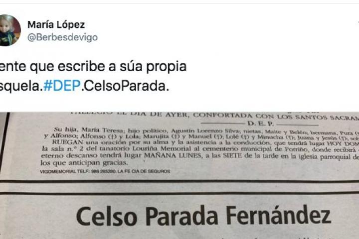 La esquela del intérprete publicada este domingo en el Faro de Vigo ha llamado la atención y conmovido a muchos usuarios en Twitter porque la escribió él mismo.