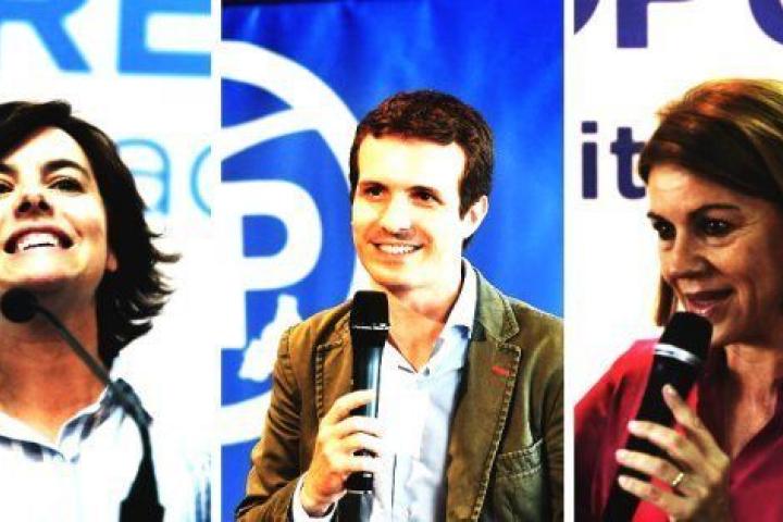 Seis aspirantes se enfrentarán a la primera ronda este jueves, de la que saldrán los dos finalistas. Y tres son los grandes favoritos: María Dolores de Cospedal, Soraya Sáenz de Santamaría y Pablo Casado. Tres dirigentes acostumbrados a los medios y a las cámaras, pero que han tenido que improvisar sus campañas en apenas unas semanas.