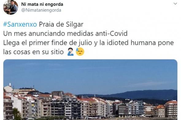 “Praia de Silgar Un mes anunciando medidas anti-Covid Llega el primer fin de semana de julio y la idiotez humana pone las cosas en su sitio”, ha escrito el usuario.