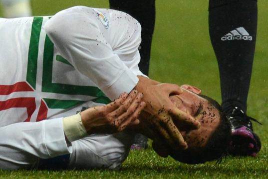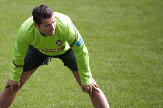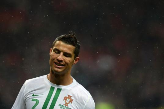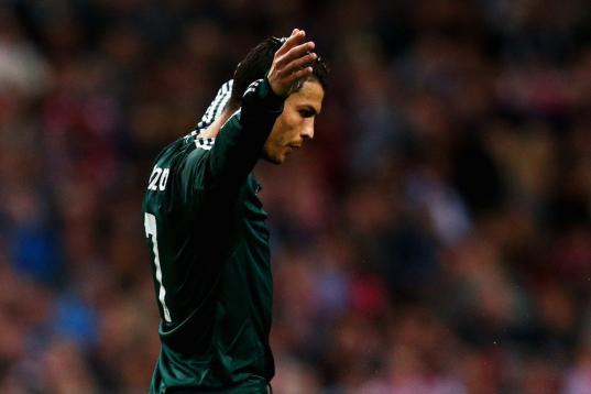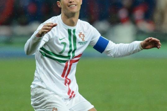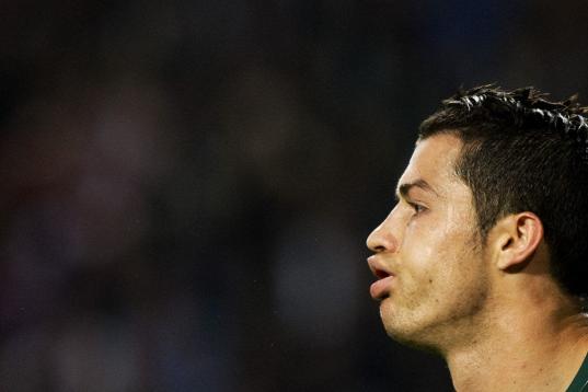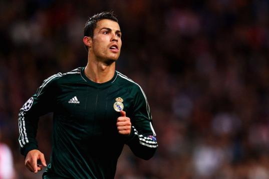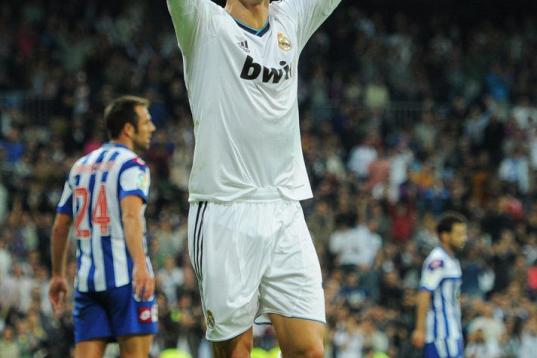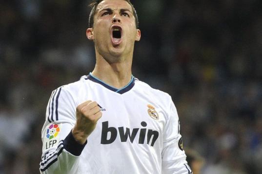 Real Madrid's Cristiano Ronaldo from Portugal celebrates after scoring a goal during a Copa del Rey soccer match against Celta de Vigo at the Santiago Bernabeu stadium in Madrid, Wednesday, Jan. 9, 2013. (AP Photo/Daniel Ochoa de Olza)