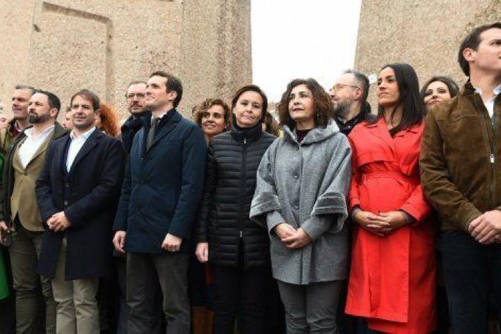 PP y Cs cifraron en 200.000 los asistentes a la manifestación. Los dos partidos que llamaron a la convocatoria, a la que se sumó Vox, han dado una cifra superior a la de 45.000 personas que ha proporcionado la Policía Nacional.