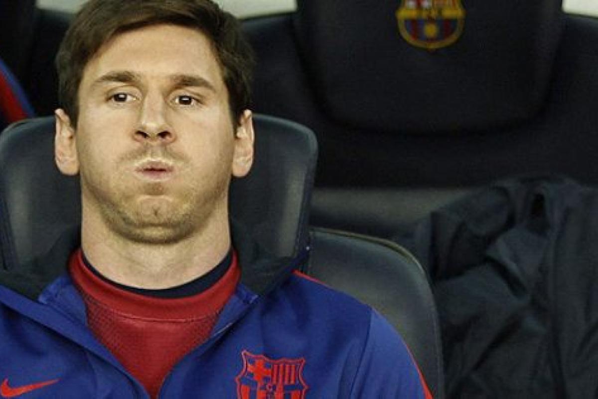Barcelona's Lionel Messi from Argentina reacts after losing the Copa del Rey soccer match between FC Barcelona and Real Madrid at the Camp Nou stadium in Barcelona, Spain, Tuesday, Feb. 26, 2013. (AP Photo/Manu Fernandez)