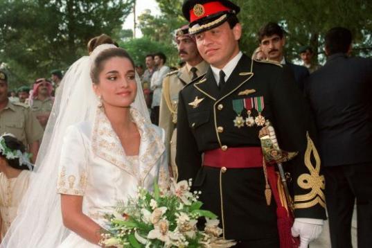 En su boda con el rey Abdullah II, el 10 de junio de 1993 en el Palacio Real de Amman (Jordania).
