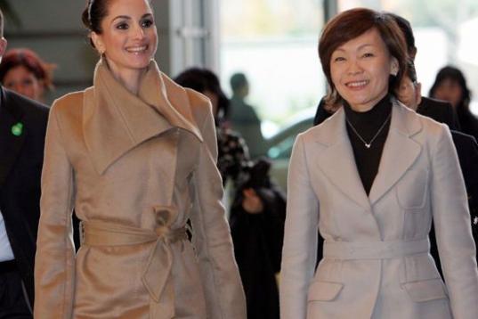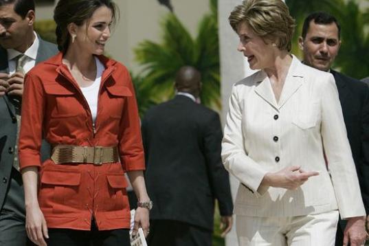 Con Laura Bush, la entonces Primera dama de Estados Unidos, en Amman el 22 de mayo de 2005.
