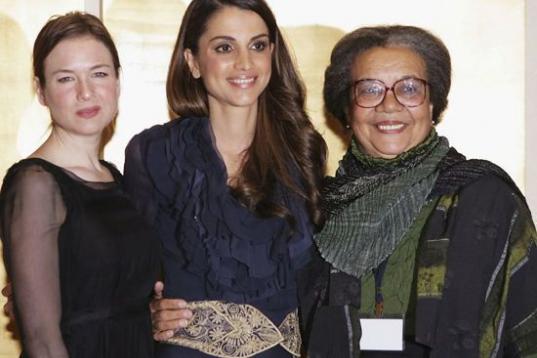 La reina Rania de Jordania con Renee Zellweger y Marian Wright Edelman en la inauguración de la red global de mujeres para la Conferencia de los Niños el 11 de junio de 2006.