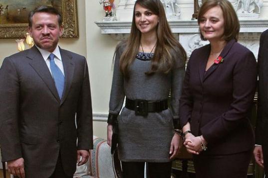 Junto a su marido durante la visita que realizaron al Primer ministro británico Tony Blair y su mujer Cherie el 6 de noviembre en Londres.