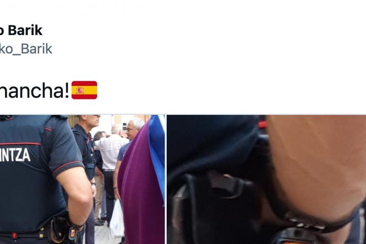 La imagen de un agente de la Ertzaintza se ha hecho viral en las últimas horas por lo que se puede observar en la culata de su pistola.