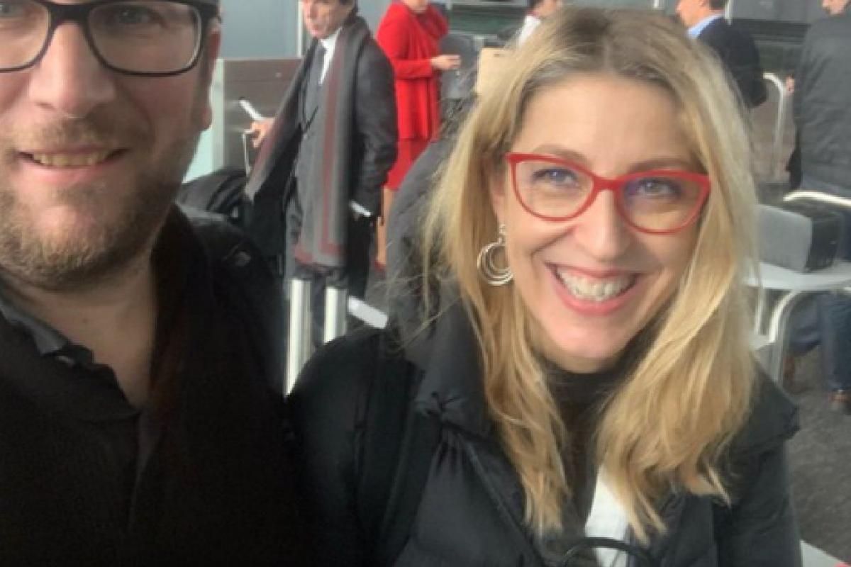 “En esas que mientras esperas en el aeropuerto de Bruselas te haces un selfie con @MEugeniaRPalop y al revisar la foto ves de fondo unos ojos que se te clavan y... NO WAY!”, ha escrito Urbán en Twitter.