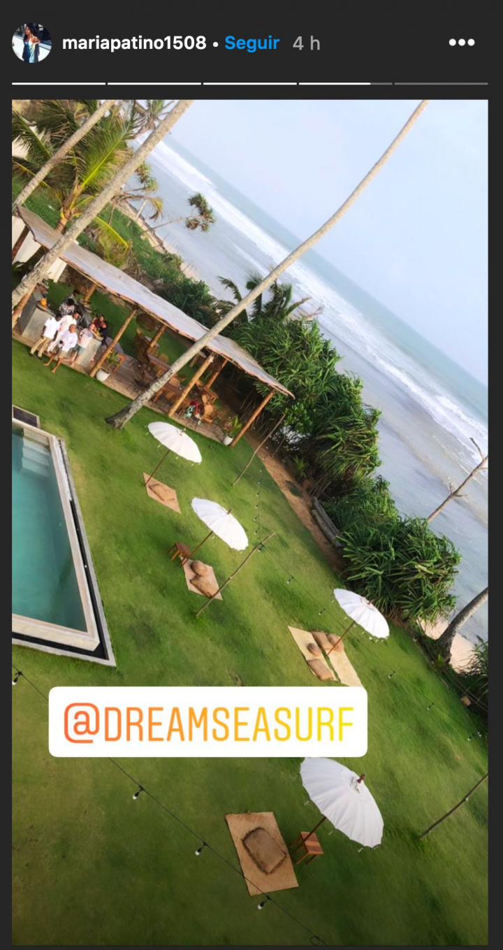 La boda ha tenido lugar en la playa en Sri Lanka, donde la colaboradora estaba de vacaciones con su pareja. La ceremonia, por lo que se puede ver en la foto, ha sido de lo más íntima: en la imagen solo aparecen Patiño, Rodríguez y varios locales.