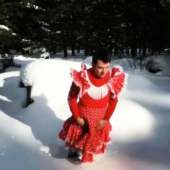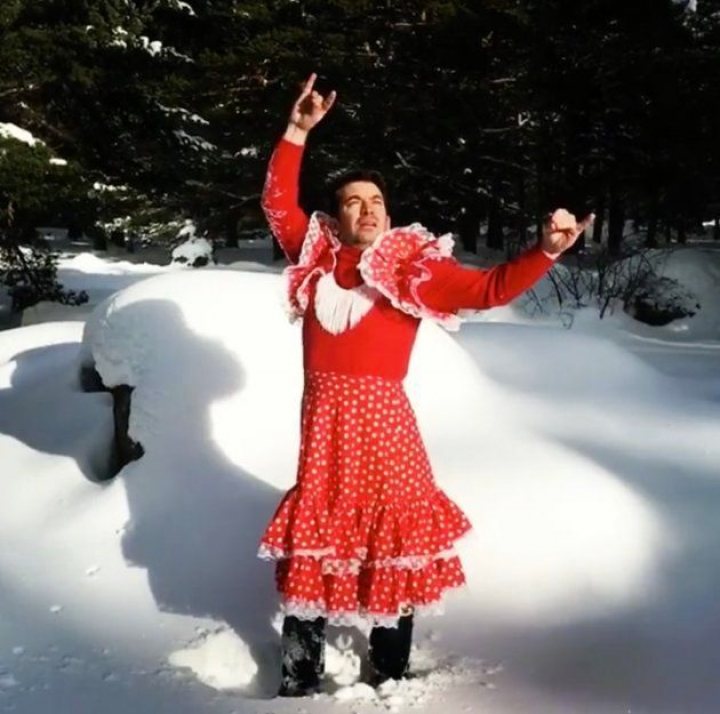 La foto más loca de Arturo Valls: con traje de flamenca y en la nieve