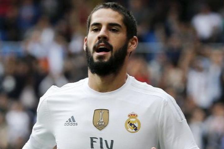 En la foto, se ve a un Isco muy sonriente sobre el que se abalanza una muy feliz Sálamo.