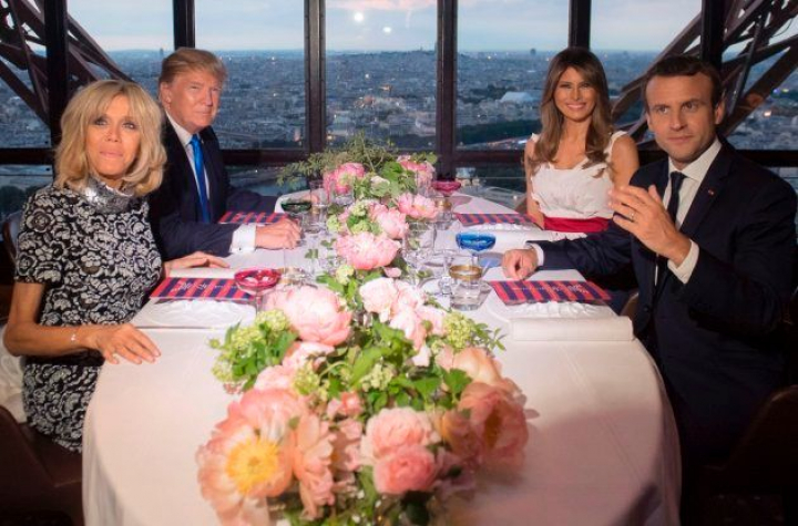Ambos mandatarios disfrutaron de una "cena entre amigos", el jueves en el mítico restaurante gastronómico de la Torre Eiffel, Le Jules Verne, junto a sus esposas, Melania Trump y Brigitte Macron, desde donde pudieron admirar desde lo alto la Ciudad Luz.