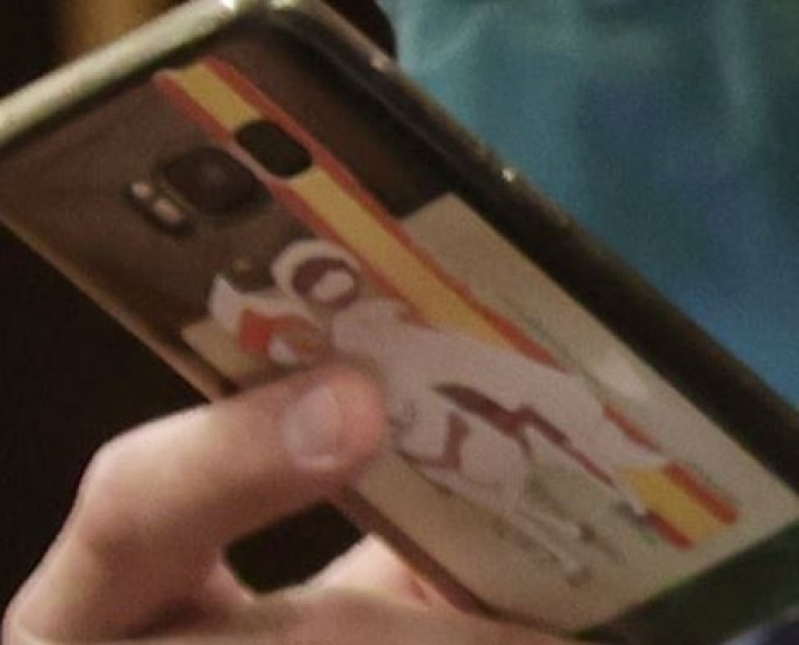 La imagen deja ver la funda que el político lleva en su móvil y lo cierto es que es fiel a sí mismo: en ella aparece, cómo no, una bandera de España junto a un dibujo que representa al Apóstol Santiago a caballo.