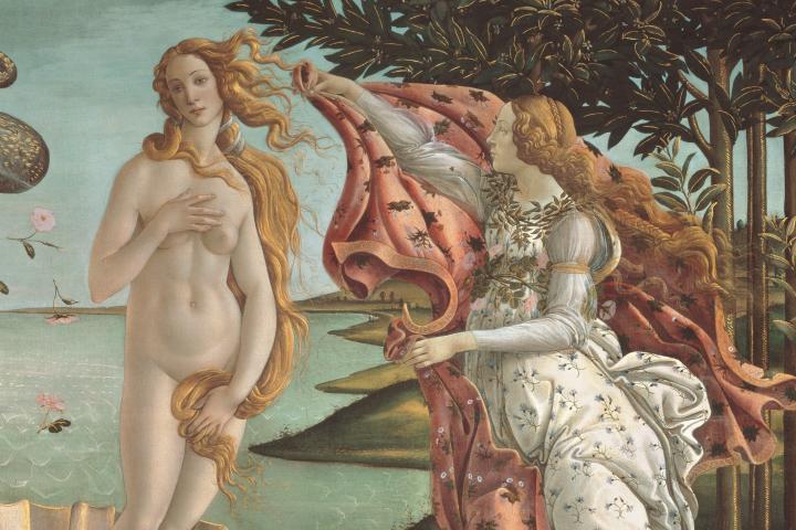 El Nacimiento de Venus (1485), de Sandro Botticelli, está considerada una obra cumbre del Renacimiento florentino y uno de los mayores tesoros de los Uffizi.