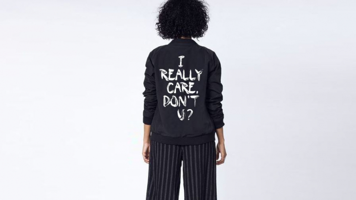 Wildfang, una tienda fundada por mujeres que aspira a empoderar a la gente con su ropa, ha lanzado una cazadora bomber con las palabras "I REALLY CARE, DON'T U?" [A mí sí me importa, ¿a ti no?] en la espalda.