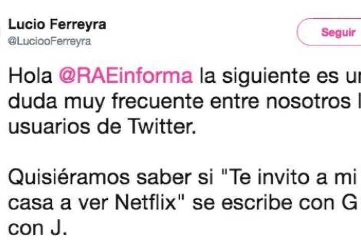 El usuario de Twitter @LuciooFerreyra ha bromeado este martes con el hecho de que la gente invite a su casa a alguien a ver Netflix con una finalidad sexual, o al menos, de ligoteo.