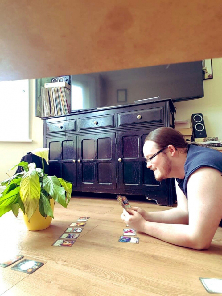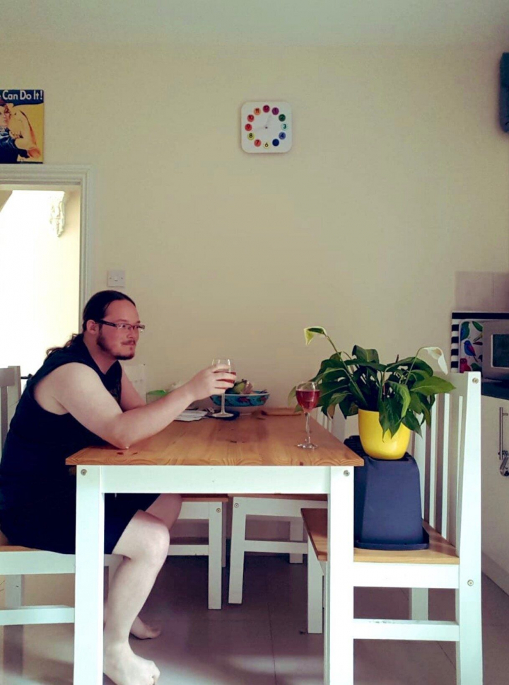 “Me envío esto”, señala. Se refiere a un conjunto de cuatro geniales fotografías en las que aparece su compañero de piso haciendo cosas con una de las plantas, como tomarse una copa de vino o jugar a las cartas.