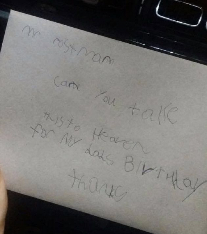"Señor cartero, ¿podría entregarle esta carta a mi padre que está en el cielo por su cumpleaños?". Este escueto y emotivo mensaje es lo que se encontró Sean Milligan, un cartero de la localidad británica de Blackburn, en un sobre en el buzón. Estas líneas —escritas por Jase, de solo siete años— emocionaron al funcionario que, en lugar de ignorarlas, respondió con una genial carta en la que le decía cómo le había entregado la misiva a su padre y le confirmó que había llegado satisfactoriamente.