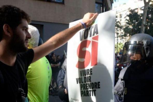 Miles de personas se han concentrado frente a la Consellería de Economía, donde han cantado Els segadors yL'Estacay han lanzado consignas como "Votaremos" y "Nuestas armas son nuestras urnas". Muy cerca, en la Via Laietana, se han vivido tensos momentos frente al departamento de Exteriores al intentar un grupo de manifestantes abalanzarse sobre los agentes de la Guardia Civil que trasladaban cajas con documentación.