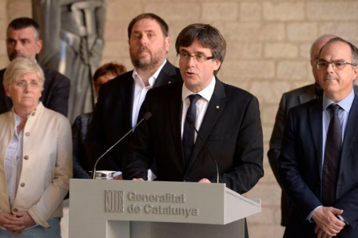 Puigdemont ha constatado una "agresión coordinada por las fuerzas policiales" para impedir a los catalanes que se puedan expresar con libertad y paz -ha dicho- el 1-O y para suspender la actividad del Govern surgido de las urnas.