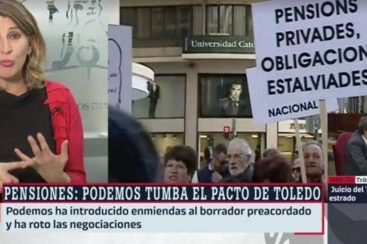 "No estamos de acuerdo con alargar la edad de jubilación, no estamos de acuerdo con que le metan mano a las viudas...". (Pincha aquí para verlo, a partir del minuto 47:00).