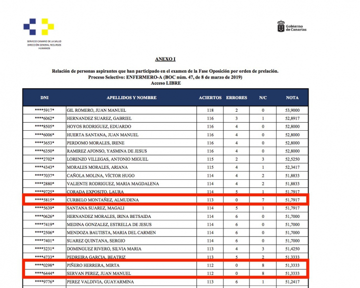 Se presentaban más de 10.000 personas. Había 1.095 plazas. Y sólo tres personas lograron aprobar sin ningún fallo las oposiciones a Enfermería del Servicio Canario de Salud. Sus nombres: Almudena Curbelo, Mirta Piñero y Juan Manuel Serván. (Pincha aquí para ver todas las notas)