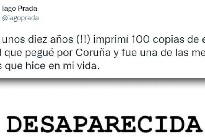 Es una historia de esas que se ve de antemano que son garantía de éxito en Twitter. El usuario de la red social Iago Prada ha compartido en su perfil los carteles que colgó hace 10 años en A Coruña y la historia en la que desembocaron.
