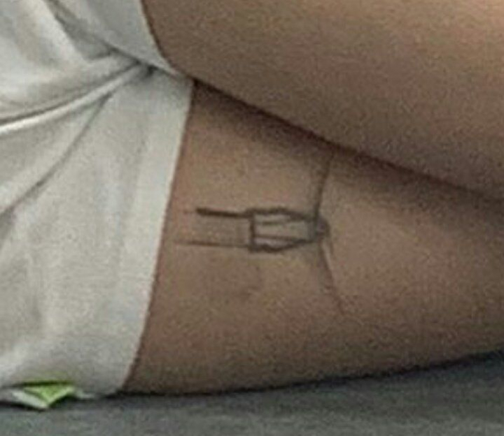 Según han identificado algunos seguidores de la cantante, comparte el mismo tatuaje con su hermana —que lo tiene en la pierna izquierda— y es un guiño a la represión de la mujer. La artista feminista suiza Valie Export también lo luce, como una crítica a la cosificación de la mujer en el sistema patriarcal.
