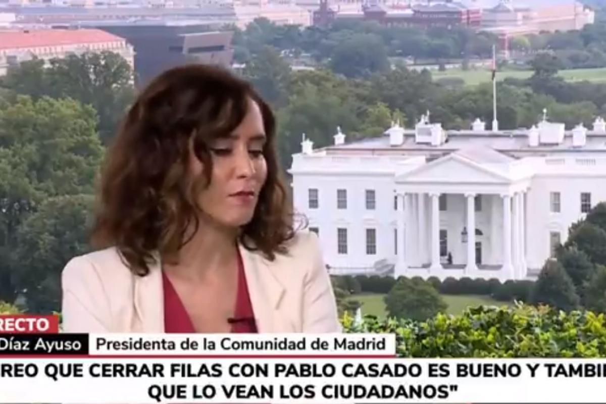 Isabel Díaz Ayuso continúa con su viaje por Estados unidos y su última parada ha sido Washington, tras visitar Nueva York. Allí, y con la Casa Blanca como telón de fondo, la presidenta de la Comunidad de Madrid ha sido entrevistada por Telemadrid.