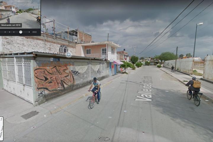 En las imágenes se ve la sucesión de dos fotos tomadas por los coches de Google en la calle Valle de San Juan, en las afueras de la localidad mexicana de León.