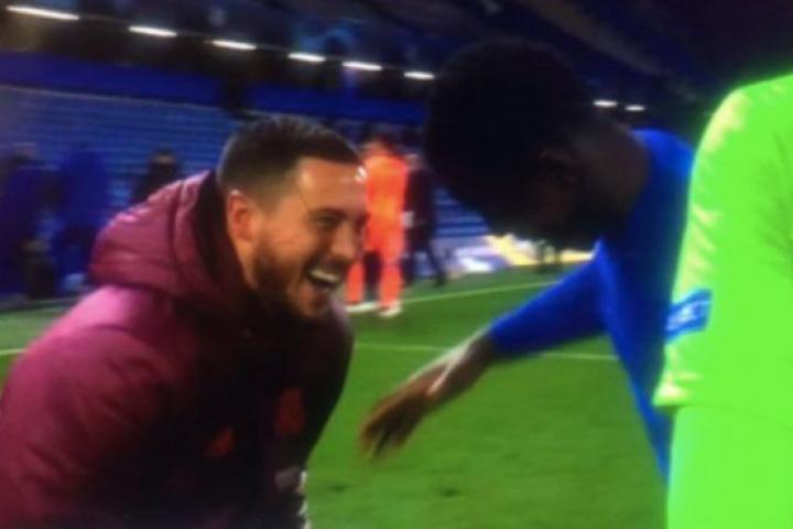Partiéndose de risa con un jugador rival tras haber pasado desapercibido durante todo el partido. La imagen de Eden Hazard, jugador del Real Madrid, bromeando con un futbolista del Chelsea tras caer eliminado contra el club londinense en las semifinales de Champions (2-0) ha cabreado a muchos madridistas.