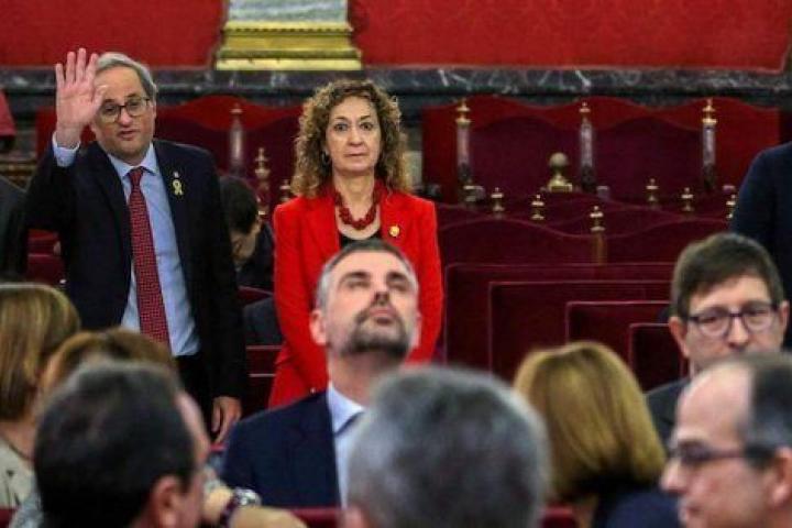 A su llegada, Torra no ha dudado en dirigirse a los acusados, levantando la mano para saludarles mientras esgrimía una sonrisa. Lo más llamativo de la instantánea ha sido cuando todos los acusados se han girado en dirección a Torra. Bueno, todos los acusados menos uno: el exvicepresidente de Cataluña, Oriol Junqueras, máximo dirigente del Gobierno catalán durante el 1-O junto al huido Carles Puigdemont, de quien ahora se encuentra muy distanciado.