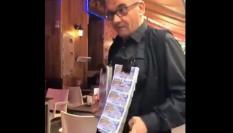 El dueño de la administración de lotería de la calle Orense,50, en Madrid, celebra la venta de número 52215, cuarto premio del sorteo extraordinario de la Loteria de Navidad.
