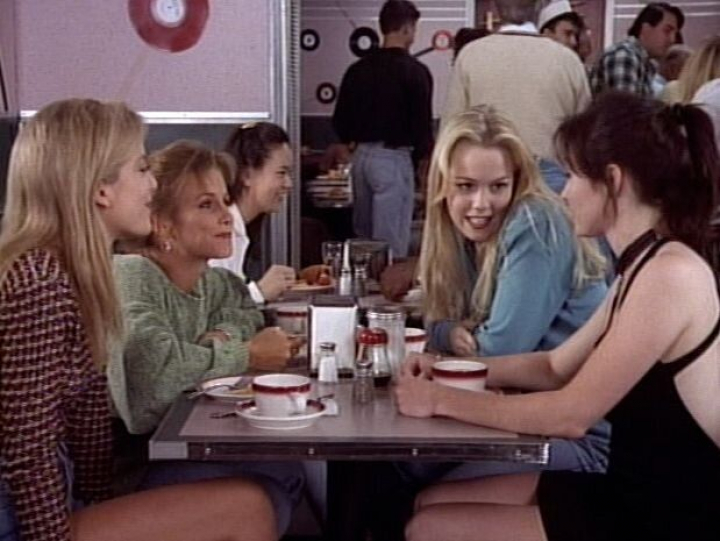 Este jueves Shannen Doherty —Brenda, en la ficción— ha compartido una foto en la que se la ve junto a Cateris y el resto de chicas del grupo Tori Spelling (Donna) y Jennie Garth (Kelly). Las actrices imitan en la imagen una reunión en el café de Peach Pit, donde solían reunirse en la serie. Y, además, ha dado fecha de estreno de la serie: el 7 de agosto en Fox.