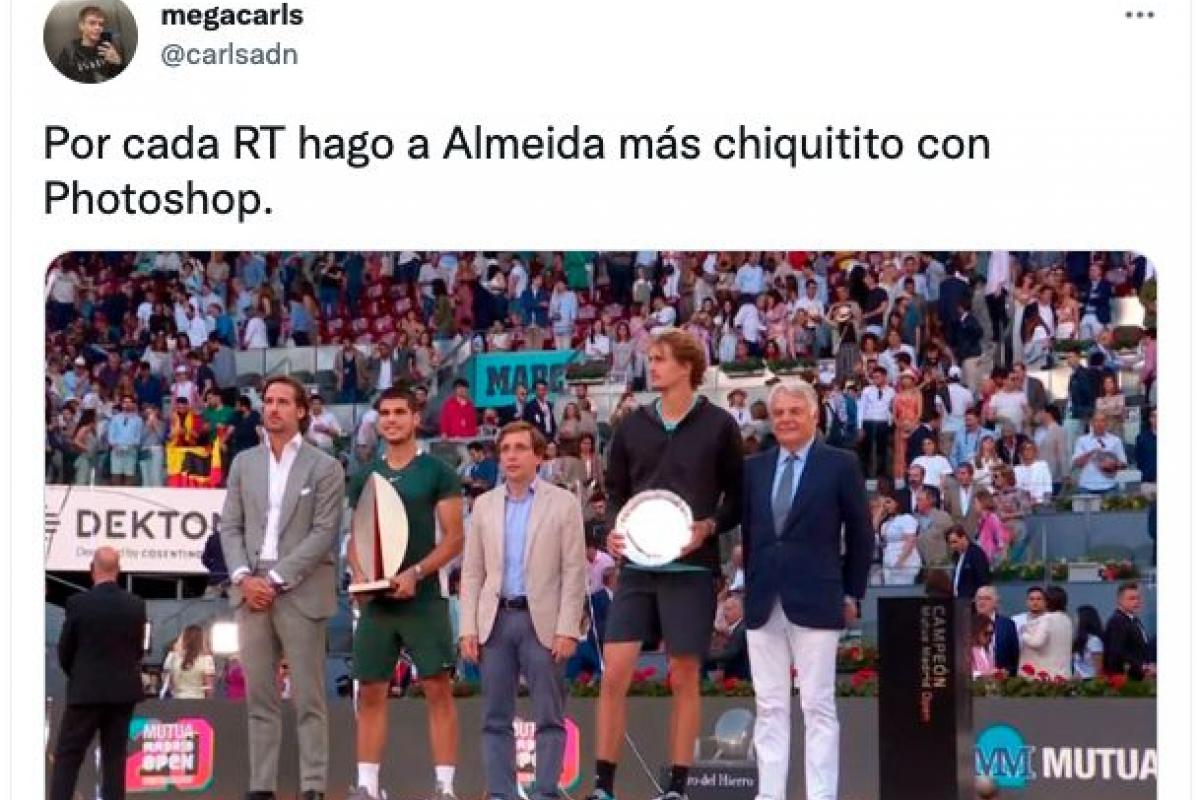 Entre ellos destaca el mensaje que ha publicado el usuario @carlsadn, que supera ya los 7.700 retuits y los 21.000 ‘me gusta’: “Por cada RT hago a Almeida más chiquitito con Photoshop”.
