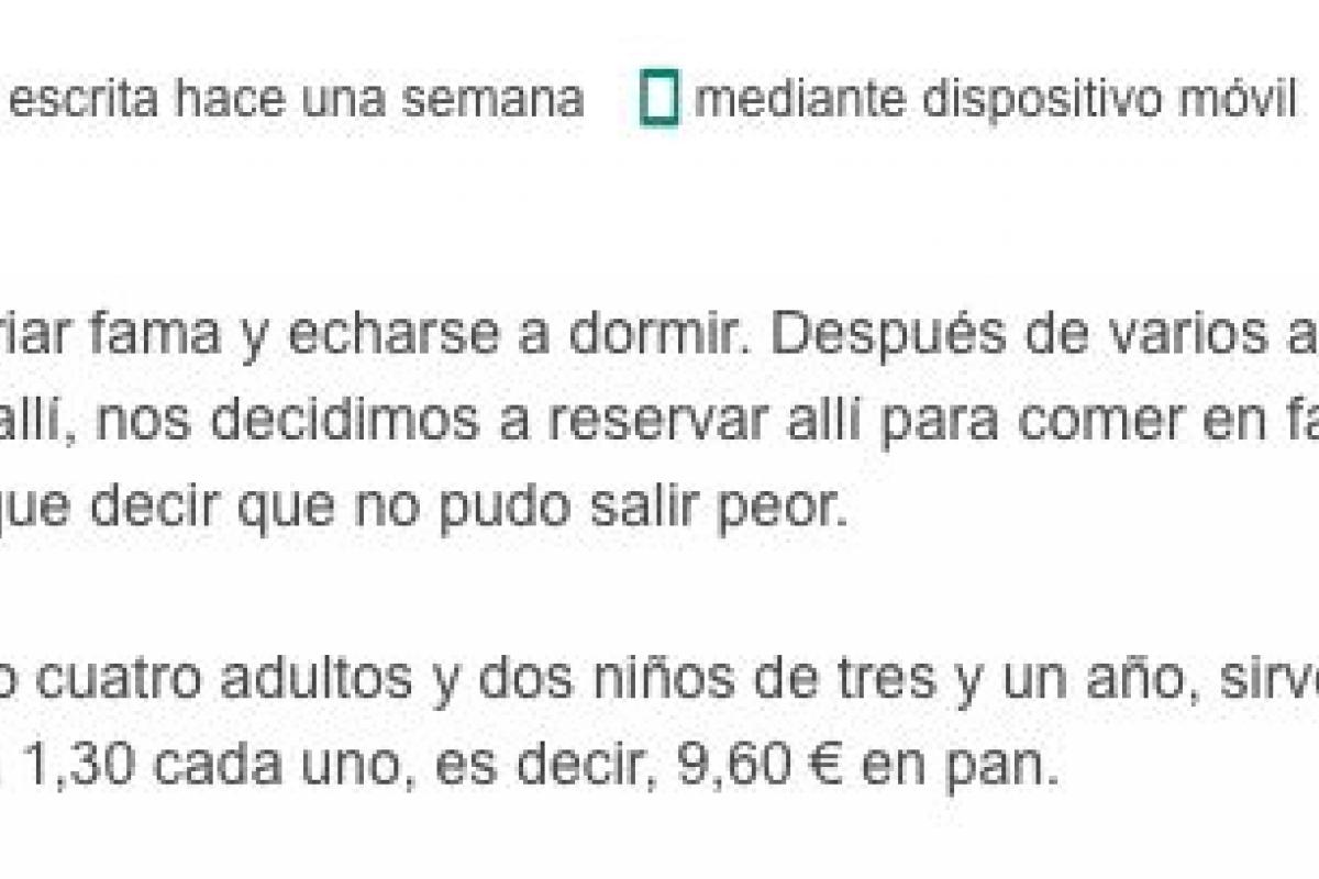 Entre estas últimas, la de un comensal que tituló su crítica como “una estafa”. El cliente critica que el restaurante ha criado fama y se ha echado a dormir y que la celebración de un cumpleaños allí “no pudo salir peor”.