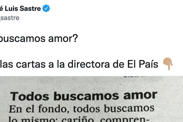 El lector del medio de comunicación que dirige Pepa Bueno ha titulado su texto como Todos buscamos amor. En ella, Hernández reivindica el amor de verdad y normalizado, más allá de que sea algo puntual.