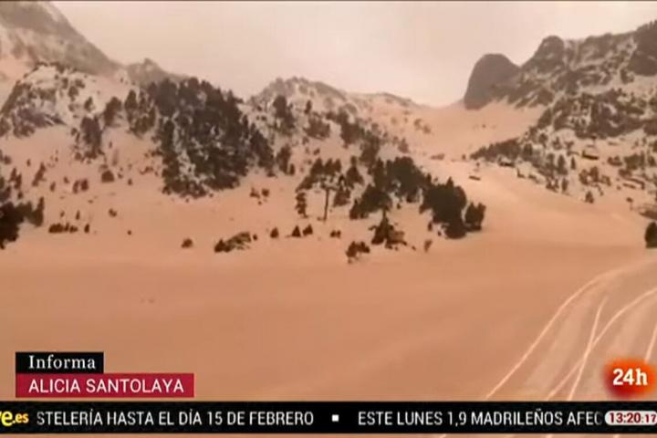 Las imágenes que dejó se empezaron a difundir rápidamente por redes sociales. Una de las más compartidas fue la de la nieve en el Pirineo cubierta por ese tono rojizo.