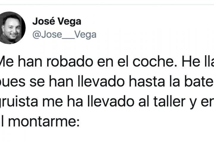 José Vega, que se define en Twitter como trabajador social, mediador y activista pro derechos humanos, ha contado en su cuenta lo que le sucedió esta semana después de sufrir un robo en su vehículo.