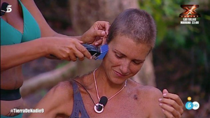 "Bueno, me veréis casada con peluca", dijo la concursante, que pasará por el altar el 14 de septiembre con Julio Ruz. "Me está costando la misma vida no comer", aseguró la exmiss. Jorge Javier Vázquez le dio unos segundos para que se despidiera de su pelo antes de que la peluquera Raquel Mosquera cogiera la maquinilla.