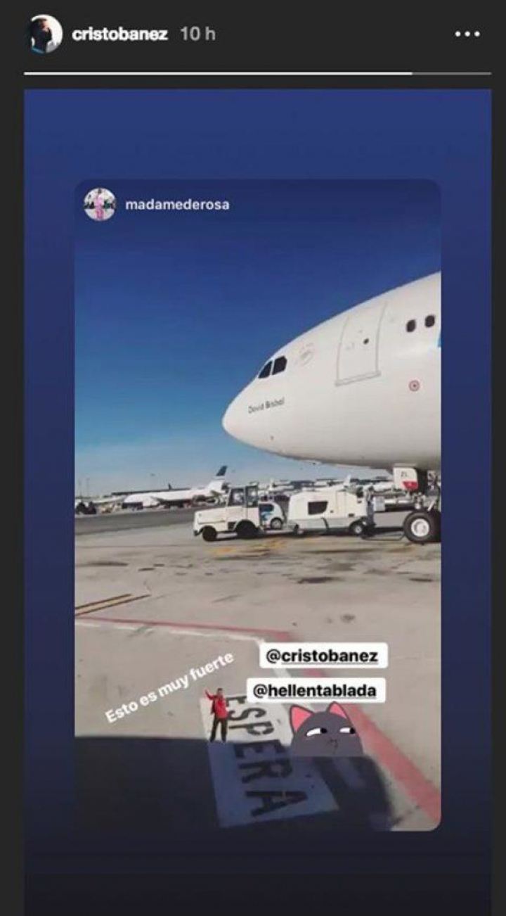 Dos de los sorprendidos antes de embarcar fueron la bloguera Madame de Rosa y el diseñador Cristo Báñez, que compartieron su estupefacción a través de Instagram Stories con un "Esto es muy fuerte". Casualidades de la vida, el avión se llamaba como el ex de Tablada, David Bisbal.