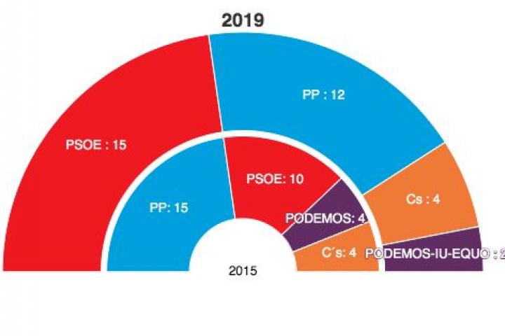 Las elecciones de este 26 de mayo han cerrado por completo el ciclo de victorias populares, que empezó a resquebrajarse en 2015 con la pérdida de la mayoría absoluta. En esos comicios, el PP se estancó en el 38,49% de los votos con 15 diputados, unos números que, acompañados de la irrupción de Podemos y Ciudadanos –ambos con cuatro diputados–, les obligó a buscar un apoyo que llegó de la mano de la formación naranja.