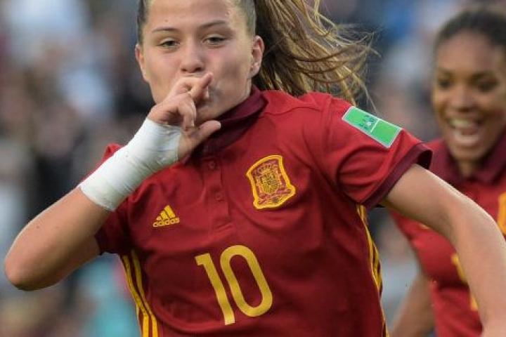 La delantera del Barça y máxima goleadora del Mundial Sub-17, del que España se alzó este sábado como vencedera, eleva el balón por encima de sí misma y se lleva por delante a un rival. Lo puedes ver aquí.