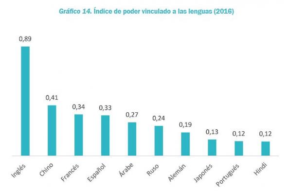 Las cinco lenguas más habladas del mundo son: chino, inglés, español, hindi y árabe. La evolución demográfica entre 1950 y 2050 refleja que, en términos relativos, la proporción de hablantes nativos de chino e inglés desciende. Mientras que el español y el hindi crecen moderadamente. Pero el árabe, con un nivel menor de uso, presenta un mayor crecimiento relativo.