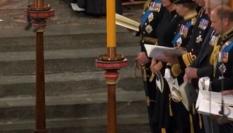 Los hijos de la reina Isabel, el príncipe Guillermo, Kate Middleton y sus hijos, Jorge y Carlota, en primera fila en la abadía de Westminster.